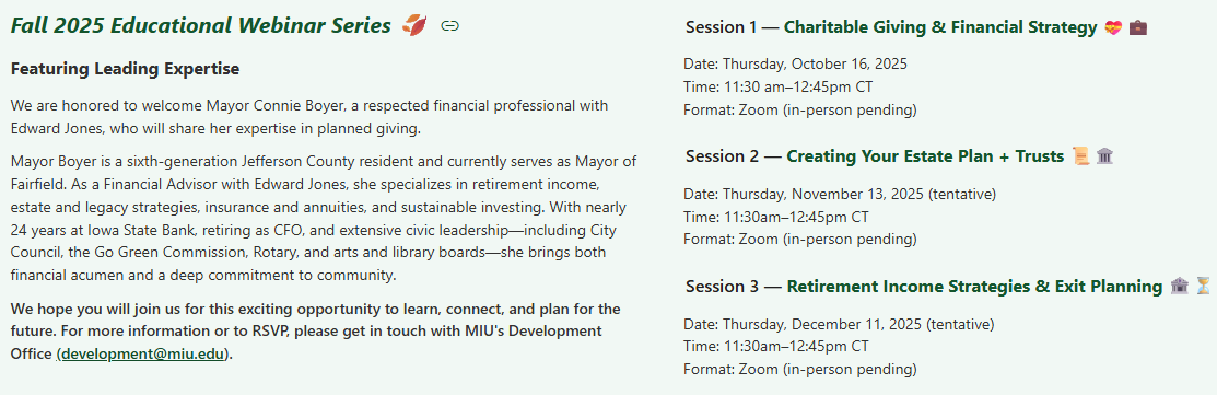 Most important, an endowment helps ensure MIU’s long-term viability by providing crucial economic stability in a downturn.